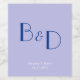 Utformningen har ett modernt, ljusblått monogram med en lavender färg-slät bakgrund.