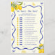 Gör ditt huvudsakliga träningstema för möhippa extra roligt med den här Personligen Blue Lemon Möhippa Han sa att hon sa att spel! Med en charmerande citrondesign är det här spelet en perfekt för en möhippa med stor klämma citron firande. Som ett underbart tillägg till temat för din citronmöhippa, behållor det gäster som har underhållit sig medan de lägger till en snyggt. Perfekt till dem som tittar för citrontemat möhippa, citroner från italienska temat möhippa, eller möhippor från sommartid!