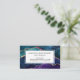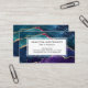 Affärskort för professionell av elegant med ditt namn, din titel eller ditt yrke och din kontaktinformation för företag med färgstarka nyanser av blått, lila och akvat med metalliska folie av guld och gniststjärnor. En samordnande bakgrund finns på baksidan av kortet.