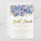 Dessa inbjudningar är designad med en faux-guld-folie-mönster, accentuerad med vattenfärgen blommigt bouquet mönster, målad av mig. Baksidan är designad med en koordinerande blå skugga. Anpassa med din party-information för att skapa en inbjudan som säkert blir en nyckelfråga.