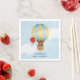 Papper napkin för babydusch med vismliknande tema, med en illustration av en brun nalle som kör en blå och gult luftballong med röd ballong. Det finns faux silver glitter flaggor runt luftballongen. Anpassa den här produkten genom att lägga till mamman till namn. Designad för en pojkdusch.