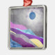 Ett vackert landskapslandskap med blå måne och färgstark texturerad rullande backe i skuggor av lila, violett, blå, cyan och gult.