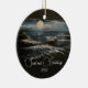 Målade natten himlar av blå måne över vatten. En abstrakt som gör en balafton på stranden. Middagskväll och tänd av fullt måne. En romantisk scen i fantastisk.