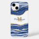 Den indigo blå vattenfärgen gör marmorutformningen mer exakt vid guld glitter. Anpassa namn och monogrammet Initial.