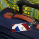 Den här volleyball-etiketten med bagaget är lämplig för en flicka eller pojke och innehåller bilden av en realistisk, abstrakt överdimensionerad volleyboll med blå, maroniska och vita paneler - personalisera med spelare namn och monogram på framsidan, adress och mobila nummer på baksidan - av katz_d_zynes