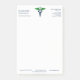En modern tolkning av den klassiska beteckningen caduceus med en metallblå stav och ormar, grönt stiliserad vingar och en rund glasplatta med en grönt kor. Denna utformning av öga-fångst och professionell är perfekt för läkare, medicinska professioneller, kliniker eller någon som arbetar inom hälso- och sjukvården. Anpassade med din egen namn, titel och kontaktinformation.