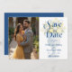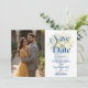 Blue Mediterranean Cheerful Floral Classic Chalice Lemons & Flowers Wedding Save the Date Cards with Photo and Back Modern QR Code.