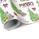 Det upprepade mönster på denna söta julomslutning papper är en bild av en blå Merle Australian shepherd Hund som bär en röd och vit julhatt. Hund finns bland paket som är en lätt inslagen gåva bredvid ett dekorerat Julgran. En bullfinkfågel landar på träd bakom den. God jul" står i den smidda texten från buffelstolpe, och din egen namnteckning finns i två fält för att du ska kunna anpassa den.