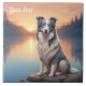 Blue Merle Border Collie sitter vid en sjö vid solnedgång. Lägg till denna bild på andra produkter. Lägg till din egen text också. Många husdjur i min butik.