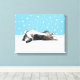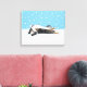 Shetland Sheepdog Kanvastryck. Cute teckning av en blå barllustjö som rullar i snö med snöflingor nedåt. Besök Jenns Doodle World om du vill ha ännu fler produkter med lycklig hund design och många helgdag-gåvor från hund aveln.