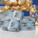 Christmas gift wrapping paper feature modern calligraphy merry Christmas and happy new year, family name typography, with personalized two photos in blue and white.