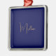 Blue minimalist custom name julgransprydnad metall