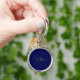 Blue minimalist custom name rund silverfärgad nyckelring