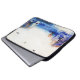Vattenfärgsmönstret "Misty Morgon" på ett underbart laptop sleeve från MHamilton Art har en segelbåt som går ut med byggnad i bakgrunden. Färg är blått och brunt på vitt. Vattenbaserad nautisk abstrakt design. Anpassa den.
