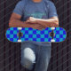 Blue Monochrome Checkerboard Pattern Mini Skateboard Bräda 18,5 Cm