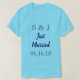 Anpassad design, den här Ny gifta T-tröjan har en monogramdesign av initialer. Under står "Ny gifta" i mörk blått text. Datumet för bröllop är skrivet med samma typsnitt som initialer. Ställe din beställning i dag!