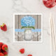 Söt Rustic stil med monogrammad mason burk napkins med blå vattenblommor och ett trästängsel, nagel huvud och antika dammkmönster snöre bakgrund och sömnad av kornblommans blåaktiga band. Dessa pappra servetter kan vara personlig med initialer och monogram av bruden och brudgummen på Mason burk. Dessa inbjudan är perfekter för en land-chic, western, bondgård, gård, ladugård, western, trädgårdsodling, party eller barnyard stil bröllop, årsdag party, förlovning, par eller möhippa. Designad av Chrissy H. Studios, LLC.