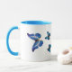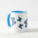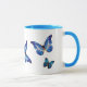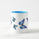 Blue Morpho Butterflies Coffee Mugg. Teckning med vektorövertoningsmaskor av två olika sorters blå morfofjärilar.