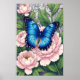 Blue Morpho Butterfly Floral Botanical Art Poster