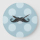 Blue Mustache, Curl Mustache, Stache, Polka dots Stor Klocka
