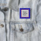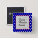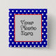 En röd vit och blå polka-prick-ram-knapp som kan anpassas med ett eget digitalt uppladdat foto. Utformningen fungerar på fyrkantiga eller runda knappar, men ram-utskärningen förblir fyrkantig.