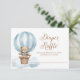 Blått Nalle Boy Shower Diaper Raffle-hölje innehåller en bra vattenfärgad illustration av en nalle i en luftballong mot mjuka moln.