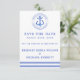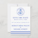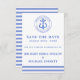 NewParkLane - Personlig Nautical Save the Date bröllop Card, med en blå vattenfärgsankare i ett runt ram, som innehåller datum för namn och bröllop. På inbjudets baksida och grund strandade en marin blå mönster. En roligt, modern design för ett nautiskt tema bröllop firande! Anpassa med namn, bröllop-datum eller annan information om personligen. Alla textstorlekar stil, färg, kan ändras för att passa dina behov. Checka ut samlingen för matchande objekt. Har du någon särskild personlig design för önskemål? Kontakta mig gärna!