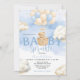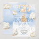 Blue Neutral Bear Cloud Balloon Baby Shower Inbjudningar