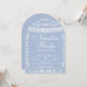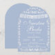 Create an atmosphere of timeless romance with this dreamily elegant dusty blue Mexican-inspired wedding invitation! Showcasing intricate papel picado banners, refined white folk art floral lacework, and a soft cornflower blue background nestled within a graceful arched frame, this invitation blends rich cultural tradition with a cool, serene sophistication. The airy, muted blue paired with luminous white detailing evokes the charm of a breezy coastal or sky-inspired celebration.