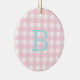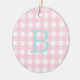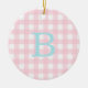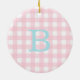 Blue och Rosa Gingham Monogram Julgransprydnad Keramik