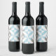 Blue och Silver Geometric ZigZag Vinflaska Etikett