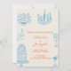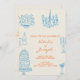 Blue Orange Drawn Whimsical All In One Wedding Inbjudningar