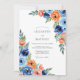Blue Orange Floral Whimsical Wedding Inbjudningar