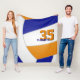 Den här mysiga volleybollfilten för en flicka eller pojke har en enkel, abstrakt förstorad royal blå, orange och vit volleyboll som täcker hela filten - idrottsmannens namn och jersey-nummer är placerade utanför mitten, anpassade i koordinering av blått och orange - av katz_d_zynes