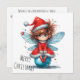 Celebrate the season with a playful and magical design featuring a whimsical Christmas fairy perched atop a shiny blue ornament. Dressed in a red Santa outfit with white fur trim and a holly-topped hat, she sparkles with joy and wonder. Her large blue wings and scattered red and blue festive dots add a cheerful touch to the clean white background, while the message “Twinkle toes and peppermint cheer. MERRY CHRISTMAS” sets a lighthearted tone. On the reverse side, a heartfelt greeting is included with the sender’s name, offering a warm and personal message perfect for sharing holiday delight. Ideal for those who love imaginative charm and fairy-inspired festive flair.