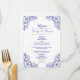 Blue Ornate Blommigt Bröllop Meny