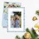 Blue Painted Folk Floral Border Christmas Photo Julkort