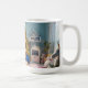 Artistic mug featuring a golden-haired girl with a jeweled crown in a soft blue royal bedroom, symbolizing innocence, creativity, and fairytale dreams.