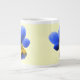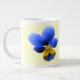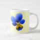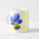 Fantastisk mugg har ett foto av en vild Pansy-blomma. Fotot har blivit artificiellt färgad, vilket har lett till en pansy med ljus- och mörk-nyanser av blått och blekens gult. Bakgrunden är blekens gult för att så mycket som möjligt visa den här blommans skönhet.