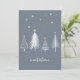 Julen Party Guld står för en blå inbjudan till er Julhelg. Dessa inbjudningar till Stil-partiet i Elegant är designade i en mjuk blått med vita Julgranar och Guld Färgad Stars. Texten innehåller: Gå med oss, Datum, Tid, Plats, Värdar och OSA. Se till att leta efter matchande julklappar i Party Guld, blå tillbehör, inklusive Tallrikar, blöjor med mera.
