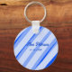 Blue pastel add name date boho retro lines pattern nyckelring
