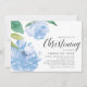 Chicen christening-inbjudan till flicka innehåller illustrationer av vattenfärgsblommor i mjuk pastellblått, accentuerade med lush grönt lövs. Anpassa till din julklingsceremoni och firande-detaljer som är anpassade till högerna. Kort bakåt till fast ljusblått.