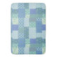 En chic Boho Large Bath Mat, med ett land-stil Faux-lappverk av olika söt Periwinkle-blommigtar och som samordnar Check Gingham mönster i Blue, Grönt and White. En del av "Periwinkle Patch"-samlingen "Posh och Painterly" gör att mönster lätt kan justeras så att det passar vilken badplats som helst.