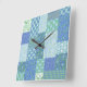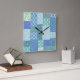 Blue Periwinkle Blommigt Boho Faux Patchwork Mönst Fyrkantig Klocka