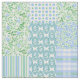En chic Boho Fabric som kan skänka ditt hem, med ett land-stil Faux-lappverk av olika söt Periwinkle-blommigtar och samordna Polka Dot, Stripe och Play mönster i Blek Blue, Grönt and White. En del av "Periwinkle Patch"-samlingen Posh och Painterly kan lätt justeras för att passa vilken struktur som helst i mönster.