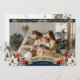 Blue Photo Holly Snowflakes Season's Greetings Julkort