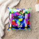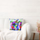 A bold abstract design is featured in a patchwork of painterly-like splotches in bright blue, hot pink, black, and yellow, by the Mid-century Modern and contemporary styles. This is a brightly colored aart design creates a sense of motion and activity. The design offers a striking and creative look, projecting a .stylish and upbeat quality for living area, bedroom, workspace, terrace, or patio decor. Also projected is a sense of warmth and a relaxed and comfortable ambience for your personal home space. There is much decorative potential in this accent piece, which fits in with a numerous styles, from retro/vintage to rustic ranch to modern urban loft or high rise.
