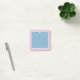 Monogrammed sticky notes in a preppy design with pink and white borders, a sky blue background, and your initials in white.