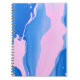 This notebook features a flowing fluid‑abstract pattern in vibrant shades of blue and pink, blending marbled movement with soft painterly transitions for a contemporary, uplifting aesthetic.