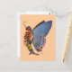 En vintage bild av en blå fågel med vacker blå fjäril vingar. En samordnad uppsättning kort, vykort, klistermärken och porto frimärke.